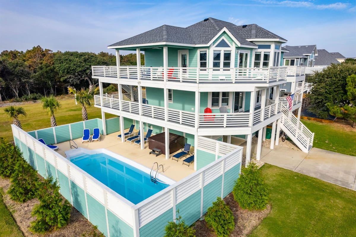 Escape to Harmankaya Coastal Retreat, a beautifully renovated 6BR, 5.5BA home in the exclusive Whalehead Beach community of Corolla, NC. Just steps from the beach, enjoy a private pool, hot tub, game room, wrap-around decks with ocean views, and a gourmet kitchen. Perfect for families or groups, this luxury getaway offers Smart TVs, high-speed WiFi, outdoor sports, and ultimate relaxation. Book now for the perfect OBX escape! Rental agreement required.