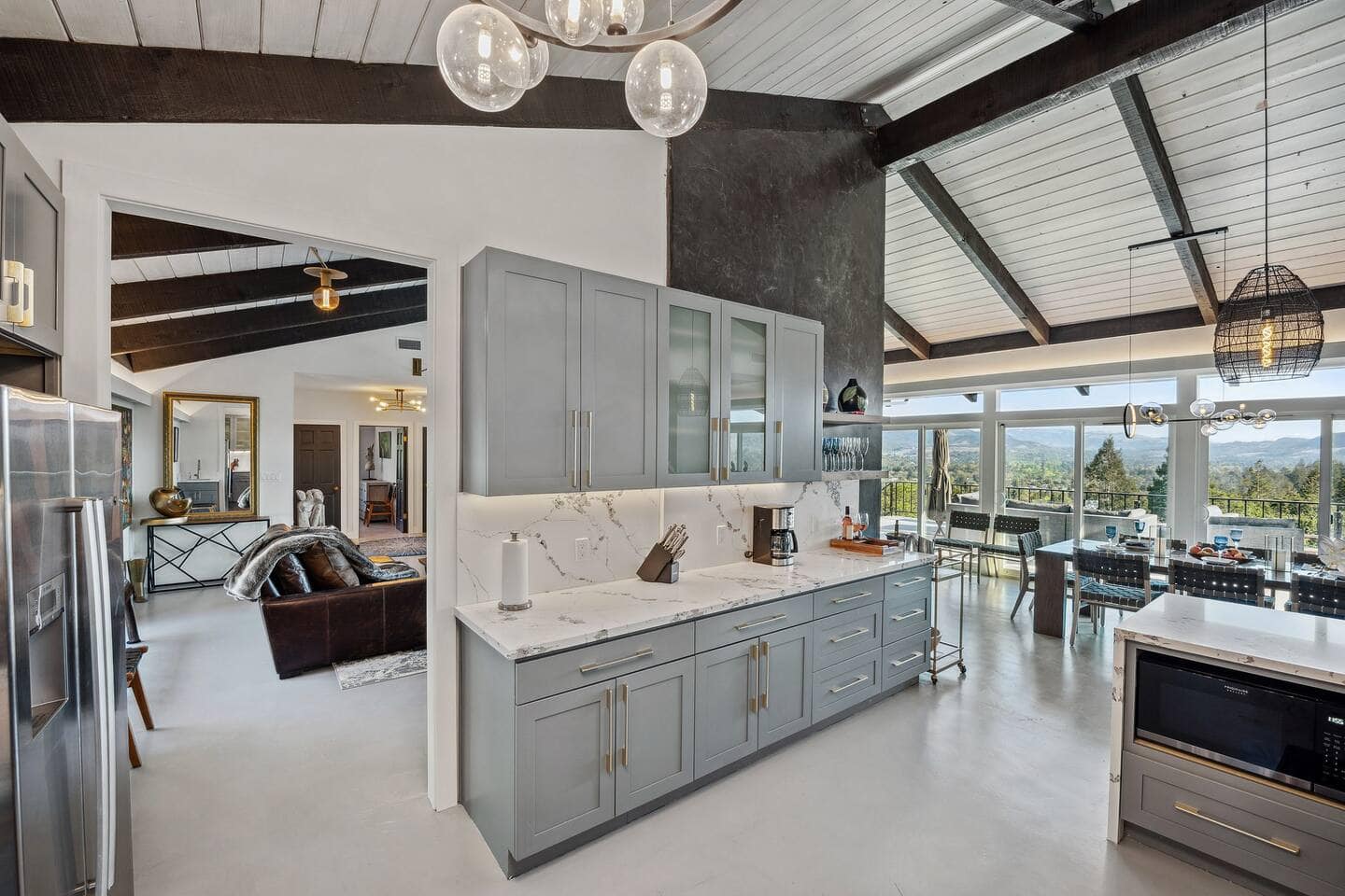 Welcome to Quail Roost by KEVALA TERRA. Immerse yourself in the panoramic views of the Sonoma Mountains, mingle in the large open floor-plan great room with a high ceiling, splash in the sparkling pool, or pamper in the hot tub or cedar sauna. This wine country estate is the perfect place to celebrate life’s finer moments with friends and family. Just 56 miles from San Francisco, the house is centrally located only minutes to Santa Rosa downtown and a short drive to all the local wineries, reg